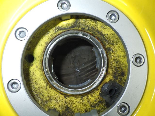 вмятина. внутри ржавчина много изменений цвета