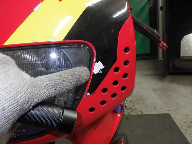 верхняя царапина краска облупилась . внутренняя дыра